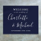 Projetado para coordenar com a nossa coleção de casamento do script Signature azul marinho. Apresentando nomes de estilo de assinatura, este símbolo elegante de boas-vindas pode ser personalizado com seus detalhes de casamento em letras brancas quic. Projetado por Thisnotme©