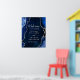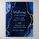 Este elegante e glamouroso sinal de boas-vindas do casamento mostra um fundo de mármore azul marinho com sotaques de falso brilho prateado. O texto combina o script manuscrito e as fontes sans serif modernas para um aspecto elegante e sofisticado. Isso será perfeito para outono e casamentos no inverno.