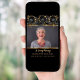 Com o texto: In Loving Memory. Personalize e adicione uma foto, nome e datas. Um fundo preto clássico, texto de ouro. Decorado com rosas pretas e ouros, flores.