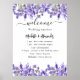 Fundo branco elegante, decorado com flores de lavanda, flores. Personalize e adicione seus nomes e sua linha do dia do casamento.