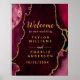Este elegante e glamouroso sinal de boas-vindas do casamento mostra um fundo de mármore vermelho com sotaques de ouro falso. O texto combina o script manuscrito e as fontes sans serif modernas para um aspecto elegante e sofisticado. Isso será perfeito para outono e casamentos no inverno.