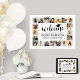 Adicione um toque personalizado a decorações de festa de formatura ou de faculdade com uma colagem de fotos de na moda 18"x24", poster de boas-vindas. As fotos e todos os textos deste modelo de sinal baixável são simples de personalizar, e as cores são fáceis de mudar com a ferramenta Zazzle design. O design preto e branco apresenta a caligrafia tradicional escrita à mão, a tipografia moderna minimalista e 20 fotos quadradas da sua escolha, como mais velho ou imagens da cerimônia de inauguração. Este poster de formatura imprimível é uma maneira elegante de dar boas vindas a amigos e familiares para uma celebração especial. Parabéns ao formando!