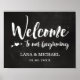 Bem-vindos à poster do casamento com um roteiro de pincel de tendências contra um fundo chalkboardesque.