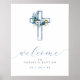 Poster de Boas-vindas do Blue Floral Cross Modern, disponível como download digital