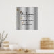 Simples, elegante, poster de boas-vindas de prata chic com espirais florais de ouro e um roteiro de caligrafia moderno.