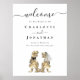 Tema do Dinossauro Sinal de boas-vindas T-Rex Bride & Groom Jurassic dino e elegante guião moderna Adicione um toque de diversão Jurássica ao seu grande dia com esta engraçada placa de boas-vindas com tema de dinossauro que apresenta uma ilustração de cor d'água caprichosa de uma noiva T-Rex e matizes beges em um simples fundo branco, esta única placa de casamento personalizada é a fim do humor e elegância. Este símbolo personalizável de boas-vindas do casamento apresenta na moda moderna tipografia e fontes elegantes de roteiro, fazer fácil personalizar com os nomes da noiva e do noivo, a data do casamento e as suas próprias boas-vindas. Ideal para casamentos de destino Jurássico ao ar livre ou cerimônias de verão, este divertido sinal de boas-vindas do casamento dá o tom para um momento de ruína pré-histórico celebrando o casal feliz. Trabalho de arte original de dinossauro por Catherine Sweetman faz disso um design de destaque para qualquer casal que queira mostrar sua personalidade divertida e seu amor pelos dinos