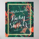 Modelos de Poster de Sinais de Boas-vindas do chá de fraldas - Flor Tropical Elegante, Planta e Folha de Script Dourado no Estilo Havaiano com Quadro Faux Gold Foil. Todo estilo de texto, cores, tamanhos podem ser modificados para ajustado das suas necessidades!