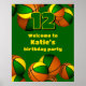 Esta poster de boas-vindas da festa de aniversário de basquete com tema de de basquete é totalmente personalizável e apresenta bolas de basquete dispostas aleatoriamente nas bordas superior e inferior do poster - cada uma das bolas de basquete tem dois painéis recoloridos, um verde e um ouro - personaliza sua mensagem personalizada e a idade da criança, ou personaliza o texto para se adequar ao seu evento - fundo é verde personalizável - por katz_d_zynes