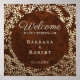 Sinal de boas-vindas de casamento moderno, elegante, com espirais florais douradas e madeira rústica. Perfeito para casamentos adoráveis, contemporâneos e de inverno.