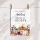 Dê as boas-vindas aos seus convidados para o chá com este belo letreiro, apresentando abóboras e folhagens de outono. Adicione o nome da convidada de honra, data do chá e texto de boas-vindas personalizado usando os campos fornecidos.