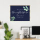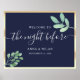 Elegante, moderno, botânico, simples dourado e azul-marinho Boas-vindas do jantar na véspera do ensaio pôster com escrita à mão em caligrafia.