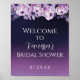 Placa de Boas-vindas Elegantes ao Chuveiro Nupcial Floral Roxo Fundo