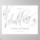 Poster de Boas-vindas do casamento moderno com o texto moderno do roteiro de folha prateada FAUX. A palavra "casamento" é uma IMAGEM produzida para parecer que tem um acabamento metálico, mas é impressa a tinta plana e não pode ser editada. Ele pode ser redimensionado para ajustado do tamanho do seu poster e todos os outros textos podem ser totalmente editados. Escolha seu tamanho (mostrado em 10 x 8) e personalize o texto, as fontes, as cores e o layout. Semibrilho recomendado ou acabamento de brilho premium.