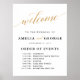 Este é um belo retrato poster bem-vindo da ordem dos eventos... sinal de casamento com texto dourado faux script.