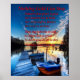 Nada Dourado Pode Ficar é uma foto de uma bela foto de dois pequenos barcos amarrados a uma doca na margem do mar com uma doca de madeira molhada saindo de você e no fundo do chão você pode ver uma silhueta de uma árvore à direita e bela luz azul roxa e branca do céu. Este poema é escrito em texto branco. Nada Dourado Pode Ficar é um poema popular O bem amado poema escrito por Robert Frost em 1923 é maravilhosamente ilustrado com as cores brilhantes do sol brilhando da água calma.