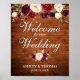 Poster Boate Rustic Wood Burgundy Floral Bem-vindo