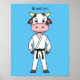 Esta vaca feliz está pronta para Kung Fu. Desenhado no estilo de desenho animado.