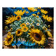 Florero sobre mesa, con paisaje en la noche de fondo, en colores luminosos. Tamaño 8,000 x 8,000, pixeles, 80 pulgadas. Arte digital en paisaje.