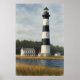 This captivating watercolor captures the iconic Bodie Island Lighthouse, a striking sentinel on the Outer Banks landscape. Its bold black and white stripes stand tall against a subtly clouded sky, a timeless beacon of maritime history. In the foreground, a serene body of water reflects the light, its edge softened by graceful, golden marsh grasses swaying in the breeze. Nestled near the base of the lighthouse are charming, historic white buildings, hinting at the life and work of those who once tended this vital light. This piece evokes the quiet strength and classic beauty of one of North Carolina's cherished coastal landmarks.
