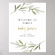 Este sinal de boas-vindas do chá de fraldas apresenta folhas de cor aquosa sage e uma fonte de script manuscrito do ouro. Este poster de chá de fraldas é perfeito para o seu evento de bebês com temática de gênero boêmico ou jardim. Par com qualquer coisa na coleção ESME para um olhar coeso.