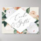 Projetado para combinar com nossa coleção de casamento Boho Blooms, este elegante sinal botânico permite que os hóspedes saibam onde largar suas cartas e presentes. "Cartões e presentes" aparece em um roteiro de caligrafia em chic, enquadrado por uma borda geométrica de flores de aquarela pastel e folhagem botânica em tons de terra inspirados no deserto de pêssego, verde-sábio, branco e marfim.