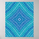 Um impressão de arte na moda, moderno, com uma mandala azul, lacerante, aqua e caleidoscópio branco.