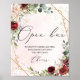 Boho burgundy floral dourado, sinal de bar aberto, 8x10, Entre em contato comigo para obter itens correspondentes ou para personalização, Rosas Blush ©