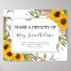 Convide seus convidados a compartilhar a memória de seu ente querido colocando este sinal e o correspondente compartilhando um cartão de memória em uma mesa no funeral, celebração da vida ou acordar. As memórias especiais podem então ser armazenadas em um encadernador ou caixa de memória correspondente como uma manutenção.