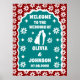 Nosso sinal de boas-vindas ao estilo retrô, mínimo e ousado, é perfeito para o casal da moda que ama se destacar e fazer uma declaração ousada. Nosso design apresenta uma combinação de cores azul e vermelho escuro. Arca simples de abstrato e com margarida crie uma aparência ousada com "bem-vindo", exibida ousadamente em letras brancas grandes