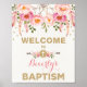 Batismo batismo com um belo tema da boêmia, sinal de boas-vindas com a marca feminina de aquarela, catcher floral a rosa e dourado