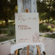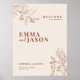 A poster de sinal de boas-vindas do casamento é caracterizada pelo estilo boho, trabalho de arte floral, terra neutra e cores beges, com uma mistura de diferentes estilos de fonte, muitas vezes em diferentes tamanhos, para criar um aspecto único e eclético.