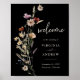 Este poster de boas-vindas na moda e elegante apresenta lindas flores de aquarela pintadas manualmente organizadas como um buquê adorável perfeito para primavera, verão ou casamentos outono. Encontre itens correspondentes na Coleção de Casamentos de Flor Selvagem Moody Black Boho.