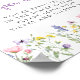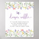 Elegante cartaz de queda de rifa de fralda para o chá de sua menina que apresenta "rifa de fralda" em um roteiro de lavanda chica e aquarelas caprichosas de inspiração bíblica púrpura, rosa, pêssego e flores silvestres amarelas e uma borboleta roxa. Personalize facilmente as instruções de fralda na tipografia simples das cinzas.