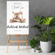 Este sinal de boas-vindas do Fim de Semana Festa de solteira com um tema de glamping exude um ar de romance e aventura, convidando convidados para uma memorável fuga ao ar livre. O design é elegante e caprichoso, com atenção cuidadosa aos detalhes. O ponto focal do convite é uma cama rosa macia, belamente ilustrada, que toma palco central. Esta cama é perfeitamente desenhada com uma copia cortada com flores delicadas, pintadas à mão em vários tons de rosa, criando uma atmosfera sonhadora e encantadora. A cobertura parece brilhar suavemente no vento, acrescentando uma sensação de movimento e romance à cena. Acima da cama, um espalhamento de lanternas flutuantes de cor-de-rosa suave e ouro adiciona um toque mágico. Estas lanternas parecem pairar no ar, lançando um brilho quente, convidando e simbolizando a luz orientadora da amizade e da aventura. Eles criam um ambiente etéreo e caprichoso, perfeito para uma experiência de glamping sob as estrelas.