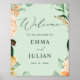 Belo sinal de boas-vindas do casamento para compartilhar seu dia especial com seus convidados. Este clássico cartaz de impressão de papel é perfeito para decorar sua recepção ou espaço de cerimônia, e tem tons pastéis macios e florais aquosos modernos em tons de pêssego, branco, marfim creme, sábio e um verde mais brilhante. Este evento personalizado fornece coordenadas acessórios com a nossa coleção floral de cheio botânico boho de papelaria e artigos de papel para eventos.