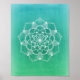 Uma impressão de arte bonito e moderna com uma design verde e azul-aqua de flores de mandala. Adicione um toque boêmico à sua decoração com esta arte na parede.