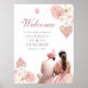 Elegante sinal de boas-vindas do casamento Sikh, com uma bela ilustração aquosa de um casal Punjabi e flores pastel com folhas de palma secas.