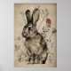 Poster Boho Rabbit Bunny Flower Print, Rustic Hare