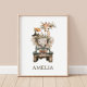 Adicione um toque doce ao quarto do seu novo bebê com esta arte na parede do Boho Safari Animal. Com um elefante de aquarela caprichosa conduzindo uma girafa e um tucano num caminhão, todos vestindo coroas florais bonitas, este design sonhador é perfeito para um berçário. Adicione um nome para um toque especial e personalizado!