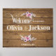 Tipografia elegante e flores de meia-folha com texturas de madeiras. Sinal de casamento personalizável. Bem-vindos ao casamento da placa poster.