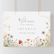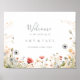 Esta poster de boas-vindas ao casamento de flor selvagem de vassoura colorida e agradável é perfeita para um casamento rústico. A design apresenta flores cor-de-rosa, roxa, esbranquiçada, amarela, azul empoeirado, vermelha, silvestre burgundy montadas em um padrão floral perfeito e delicioso, evocando beleza natural. Faça esta poster com o nome da noiva e do noivo, e a data do casamento.