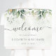 Belo sinal de boas-vindas do casamento, com aquarela eucalipto e folhas de ouro.