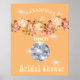 Laranja é a cor de fundo para este design de Chá de Noiva personalizado elegante com bola de discoteca floral.