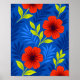 Poster Bold Vermilion Red Florals with Elegant Leaves