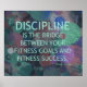 Um ginásio inspiracional, um poster de exercícios e exercícios com bolhas coloridas em verde, azul e roxo sobre um fundo de aço arranhado com uma citação malhação de Felicity Luckey of Excelente Minds Think Ajustado™. A citação motivacional diz: DISCIPLINE É A PONTE ENTRE OS SEUS OBJETIVOS DE MALHAÇÃO E SUCESSO DE MALHAÇÃO. ~ Felicity Luckey