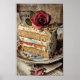 Esta imagem mestiça mostra uma fatia deliciosa de bolo de casamento, com toda a elegância e sofisticação de uma ocasião especial. O bolo é uma obra de arte em si, com sua superfície perfeitamente lisa e delicadas camadas de esponja e creme. A fatia é definida sobre um fundo estilo raspado, que adiciona um toque de charme vintage à imagem. O fundo apresenta uma colagem de diferentes elementos, incluindo fotografias antigas, anotações manuscritas e padrões delicados. O efeito geral é de elegância eterno, capturando o romance e a alegria de um dia de casamento.