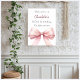 Um fundo branco na moda decorado com um arco cor-de-rosa grande. Personalize e adicione um nome e uma idade.