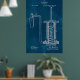 Um diagrama original de uma invenção da Cerveja Pump patenteada em 1878 projetada para arte de parede em um plano de fundo.
