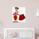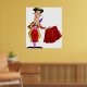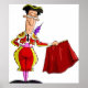 Um toureiro no anel com o touro. O matador tem uma capa vermelha. Esta design parece realmente eficaz nestes Poster