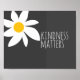 Um design poster de flores moderno, com uma citação positiva, tem a bondade que importa com uma flor de abóbora de design original em cinza e branco. Arte copyright Ann Powell todos os direitos reservados.